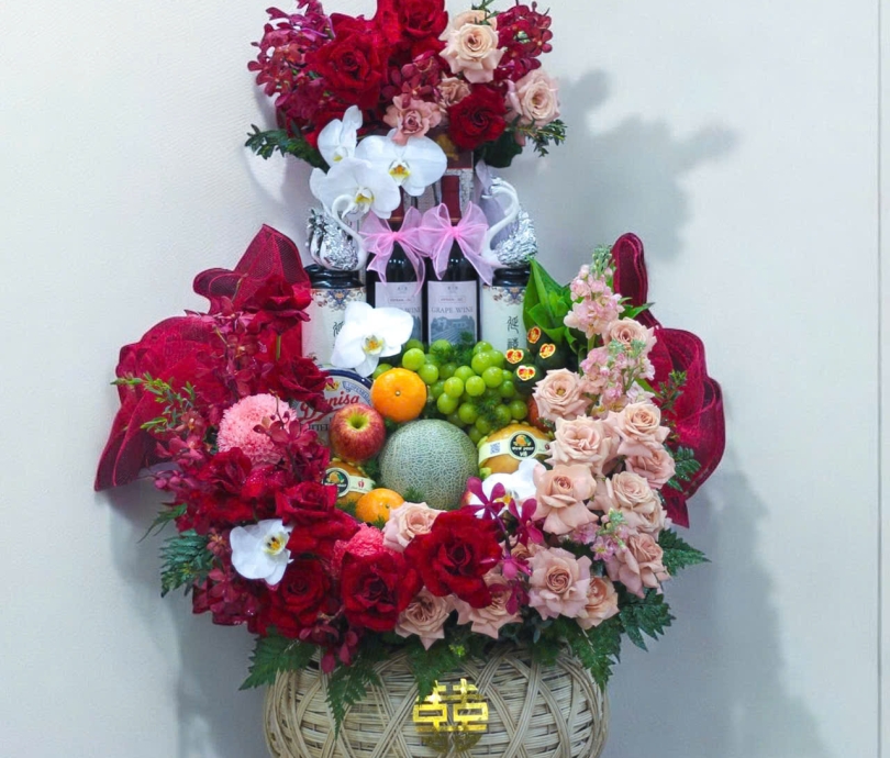 Giỏ quà bưng lễ cưới hỏi - dịch vụ hoa cưới vĩnh cửu